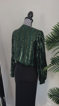 Make a statement this holiday season and beyond with our Emerald Elegance Sequin Bodysuit – where style meets sparkle in perfect harmony. Order yours now and shine bright at every celebration!